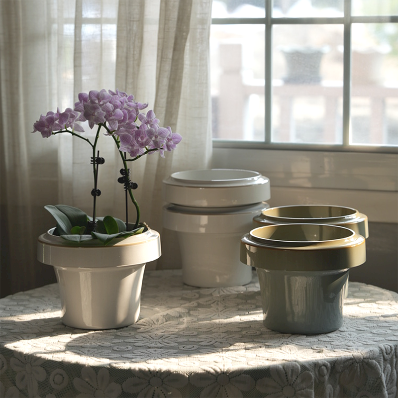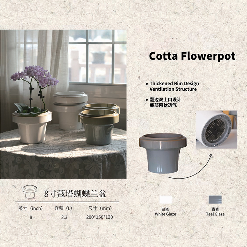 This flowerpot can be placed in indoor locations such as windowsills, paired with different flowers (like the phalaenopsis in the picture), adding a natural atmosphere and beauty to the home environment. Its simple and practical design makes it suitable for various indoor and outdoor gardening scenarios.